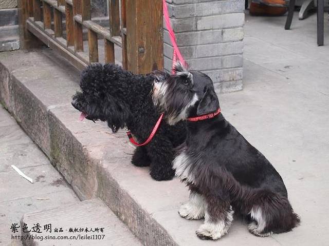狗狗的主人去买咖啡,把这俩小家伙拴在这里,这俩哥们可有趣了。