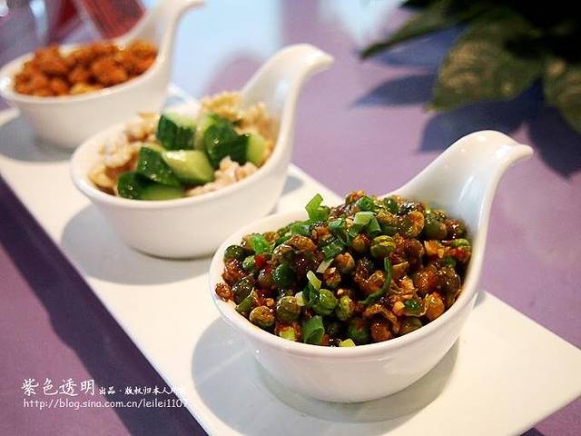 每道菜的名字不太能记得清楚,但这里的味道却是还不错,这个酥口的豆子,拌了豆瓣酱配的料,很香,入口酥香很好吃。中间的是鲜核桃做的凉菜。最后是花生,跟怪味豆做法类似。