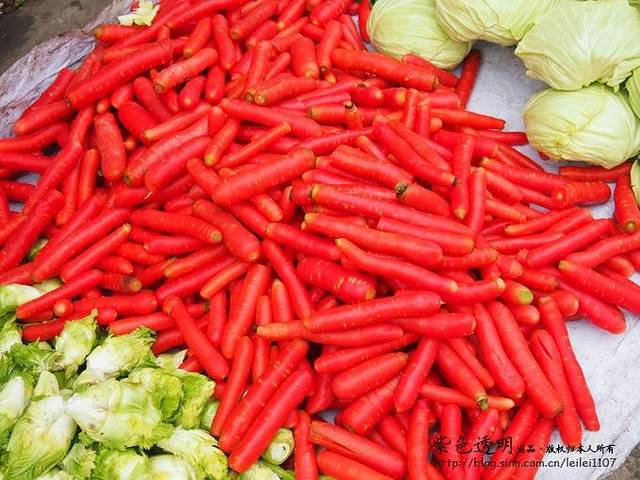 胡萝卜,但颜色是红色的。我说为何很多地方管胡萝卜叫红萝卜呢,原来真的是颜色不一样哇。