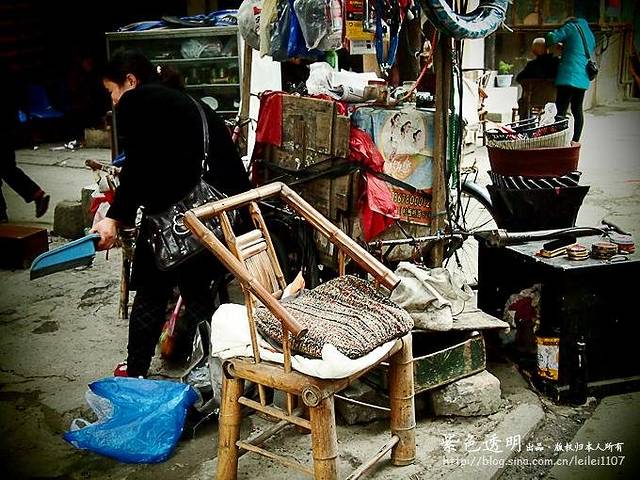 修车摊位,有一个挺大的竹筒椅子,还有椅子垫,哈哈。对嘛,工作环境也需要舒适度的嘛。