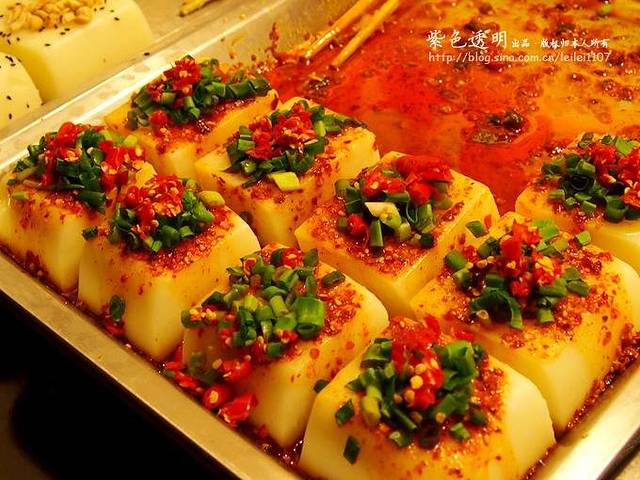 凉糕,上面浇的辣汁,红红绿绿的超诱人。