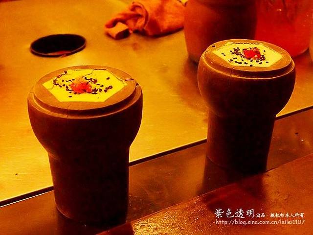 这个叫蒸蒸糕,用米粉做的,据说用传统的木头罐子做出来的,已经很少有卖了。算是很老成都的小吃。就冲这个老方法,尝一尝还是挺有价值的,不过我们这次没有尝,要下次了。