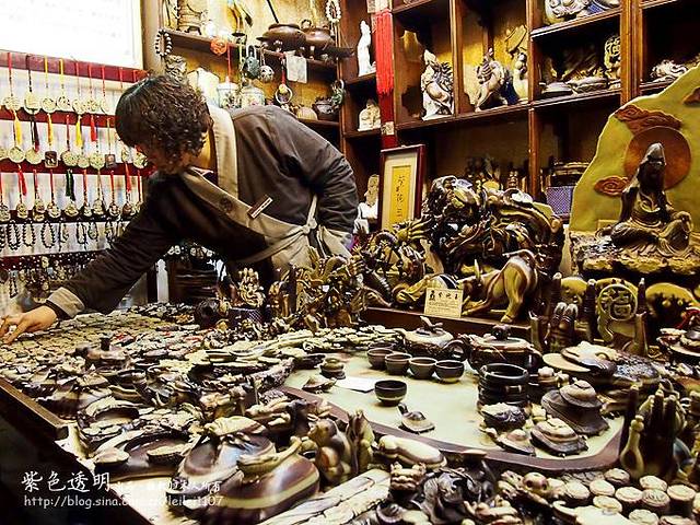 街边小店卖的东西大多也很有文化和历史,这个摊位的老板多专业,穿着也很符合货品的风格呐。