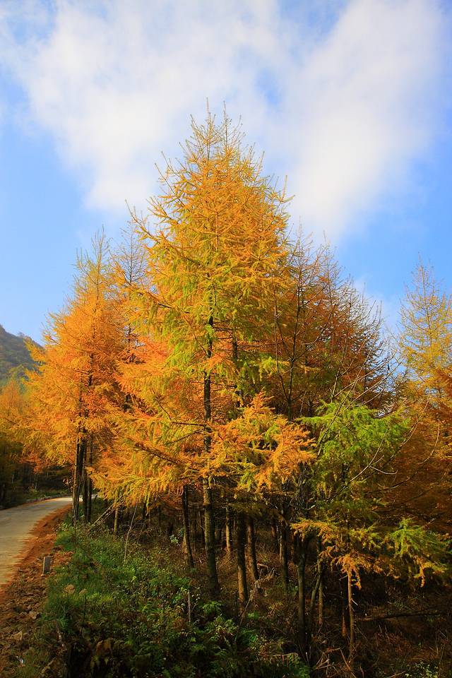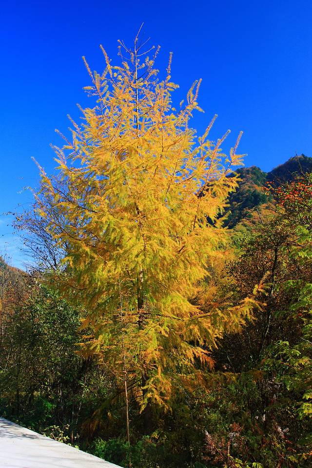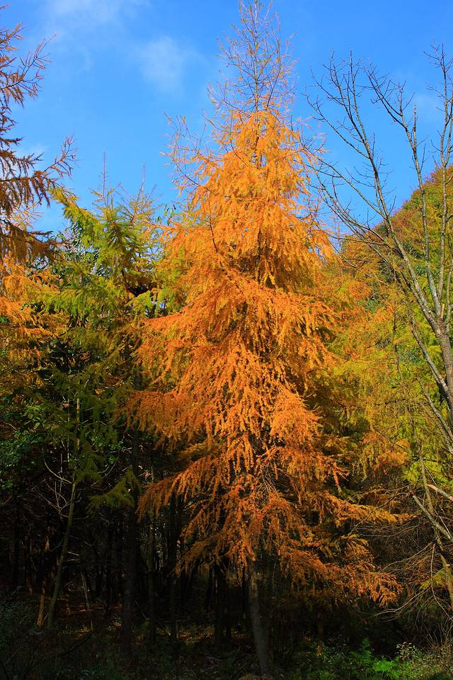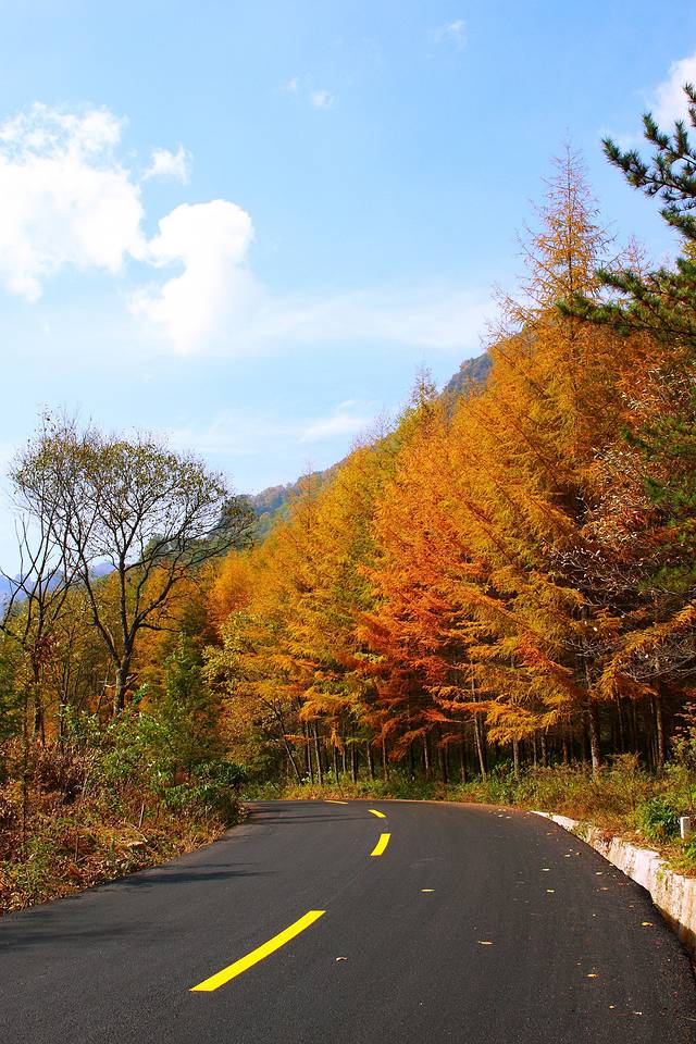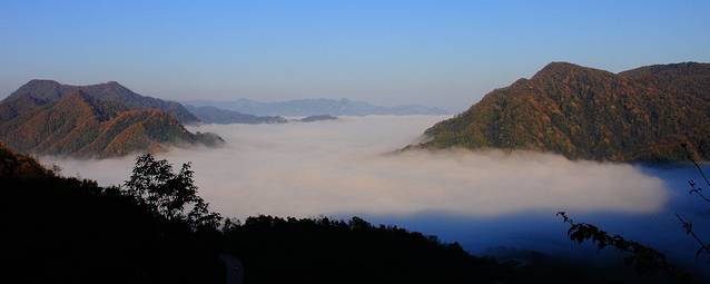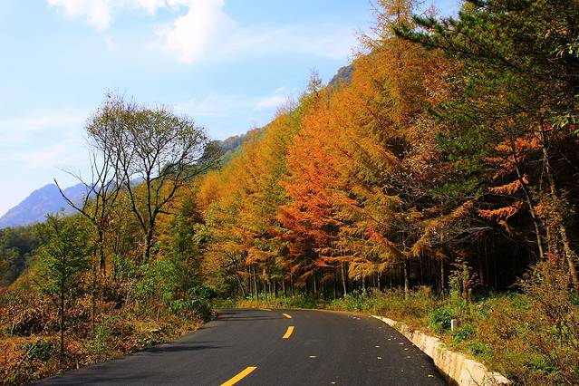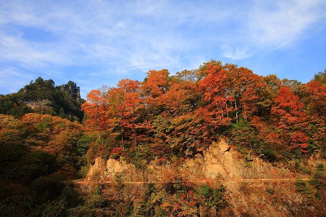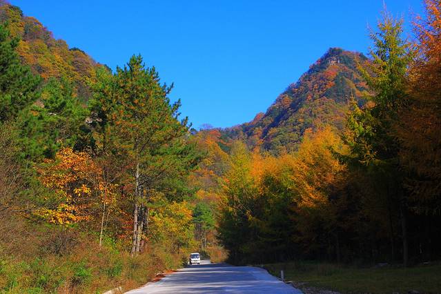 不得不说的是,在去光雾山之前,有关十八月潭的介绍很少,多数都是一笔带过。但此次的光雾山之行,风光最美、秋色最重、最有震撼力的当属十八月潭(不过,据说十八月潭的秋天来的最早)。从大坝景区的大门到十八月潭约70km,其中包括从十八月潭大门到十八月潭的39km的单行盘山路(这段路很险,只能过一辆车,时速基本上是20-35km)。从进入十八月潭之后,越往里走,映入眼睑的风景越具震撼力,路上的风光很美,但停车不方便。拍照时一定要将车停在路稍宽的地方,给别的车留下通道,此外停留时间也不要过长,拍完照片立即走人,总之,与人方便与己方便。