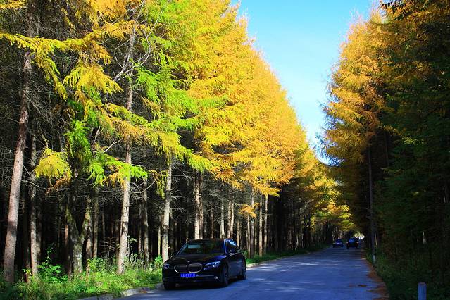 下山后沿途中,会经过一片松树林,很美,可以停车拍片。约11:00到达黑熊狗,黑熊狗大约2km长,约1.5-2小时。
