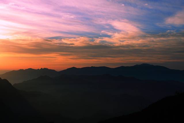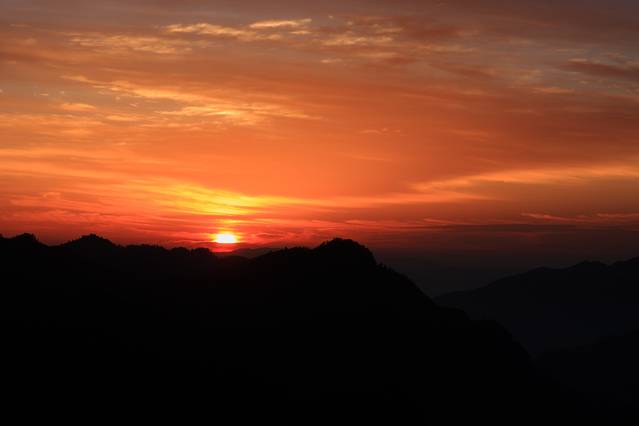 香炉山早上适合看日出,到光雾山游玩的很多人都起早到香炉山看日出。从我住的地方去香炉山看日出,必须早上5:30之前出发,否则,会赶上堵车,会很痛苦。当然,日出也不是每天都能看见,还要看运气。我在山上的时候,就有几个成都人来晚了,没有看见日出,一直说是因为我们的“人品好”,呵呵。