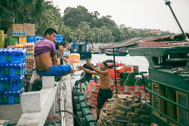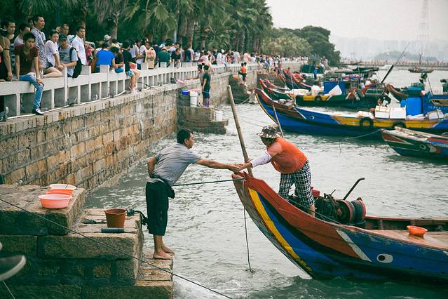 鼓浪屿一半是浪漫,一半是情怀!每天都会有渔船在码头售卖各种海鲜,现做现吃,很是方便。还有一些轮渡是往岛上运送补寄。岛上的所有物品都是这样被运到岛上的。
