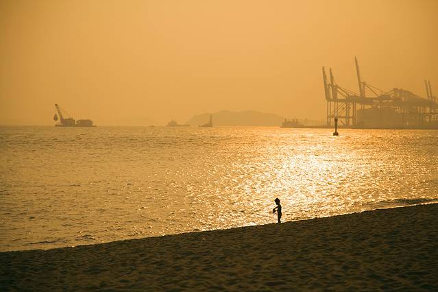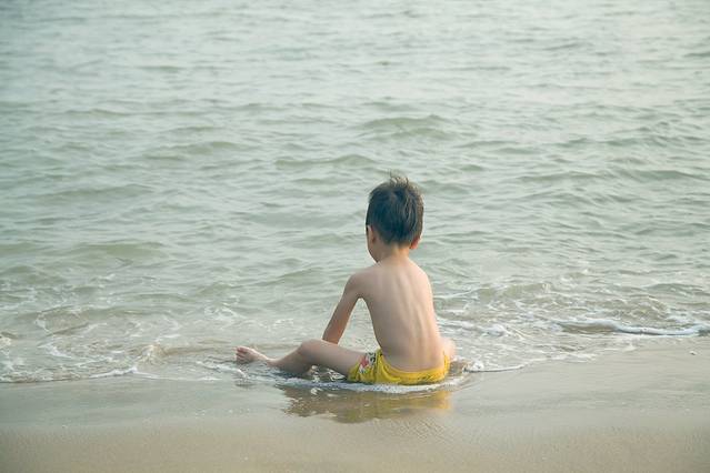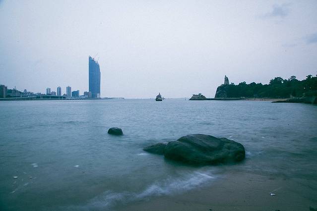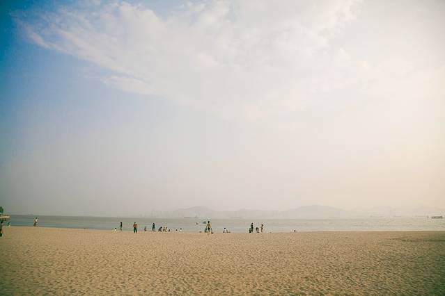 傍晚时分的港仔后海滨浴场,它就在菽庄花园的西面,沙滩平缓,沙细水浅。晚上可以住在港仔后海滨浴场附近,比码头那里幽静许多。