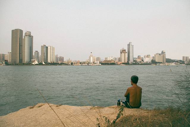 对面的厦门,一弯海水,都市繁华与小岛幽静如隔两世!