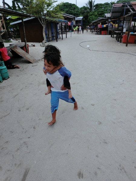 在卡帕莱潜水不过瘾的话,游客还可以有一次机会去附近的。顺便我们走访了一下马布岛岛民的村庄,满满都是孩子在沙子上玩耍。跟孩子们合照的时候,一个女孩一直抚摸我的背跟我说HELLO,MONEY?我回答说NO 接着又问CAN YOU SPEAK ENGLISH?她说NO。然后我们继续合照了。
