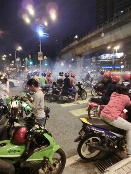 晚上8点多,我们在中央广场看到一大群当地人正在用大马力摩托车在马路上飙车,没有裁判,大家依次排队,等红灯跳到绿灯,大家就风一样的出发了。非常的疯狂,要是在我们大上海有人在大马路上如此飙车的,不是流氓就是富二代,而在马来西亚大概就是一种文化吧,就像中国的电瓶车一样一发不可收拾。