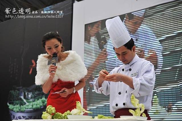 著名演员张铁林老师也上台担当起嘉宾主持,一起观看我们大厨的雕刻手艺。