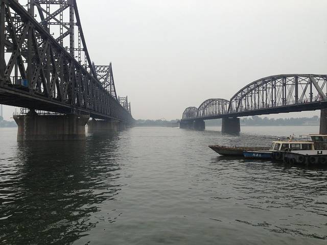 左边的大桥承载着中朝的贸易往来,这么多年 还完好的在使用。右边是断桥~只有大桥的3分之2长。