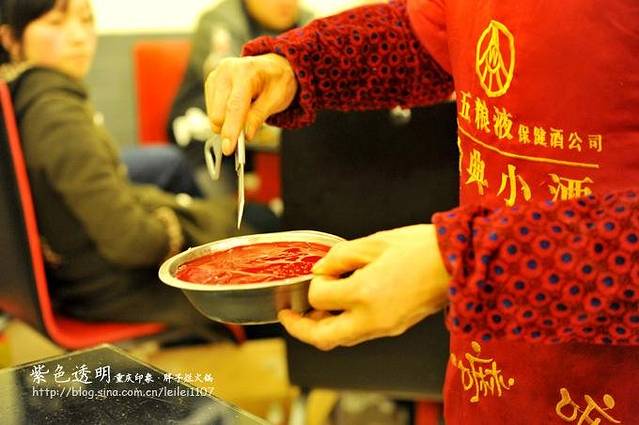 鲜鸭血,一小碗鸭血,服务员用剪刀,嚓嚓嚓,划了几刀搞定。这个也是我平时不太感冒,在主妇的强烈推荐下,试了一下,却是什么味道也没有,还挺嫩。BUT,我一想起血还是.....退缩了。