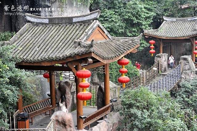 这里不是公园,也不是什么寺庙小路。还是在洪崖洞里的某一层。不知道是哪一层,但我可以确定这里是半山腰。从楼里面走出来,外面还有这样的亭台小桥。还有很多类似这样的地方,被改成了商家的独特休闲场所。