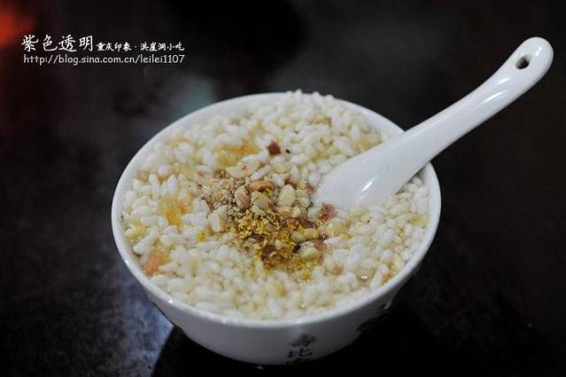 这个好像是桂花水冲米花?具体怎么叫给忘了,就是用水冲的米花,撒上点花生米和桂花,我觉得可以归类到甜水类。