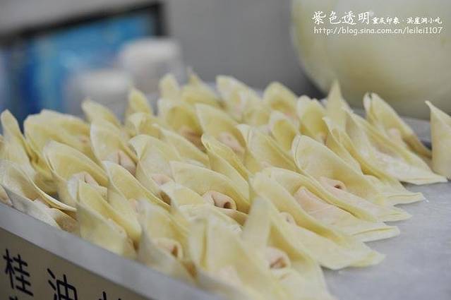摆的整整齐齐的抄手胚,这个叫法各地都不一样。北京叫馄饨,重庆叫抄手,潮粤一带叫云吞。