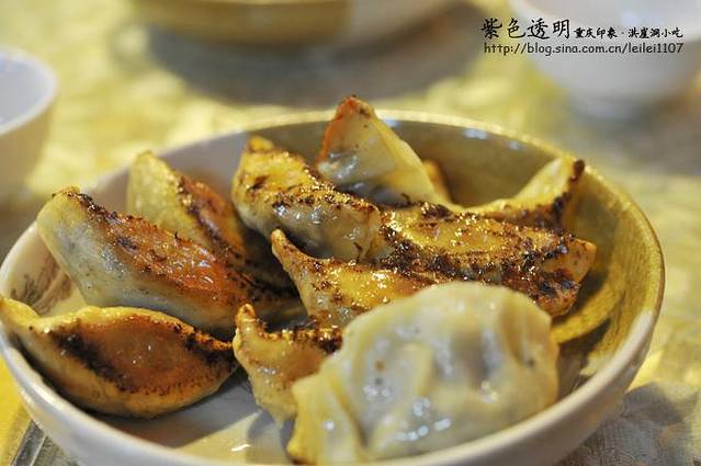 锅贴,是封口的,老北京的锅贴是敞口的。具体什么馅我还真不记得了,味道还不错。