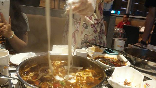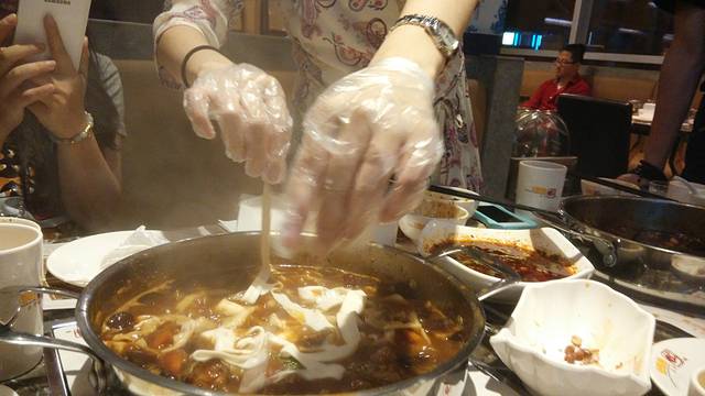3号上午朋友过来接到我,去朋友家简单休息一下,中午去了朋友的朋友的餐厅——黄记煌焖锅。位置在北一环的万达广场,地理位置好,交通和方便,环境优雅,老板娘还挺着大肚子亲自帮我们煮面条。临走不忘送给我们打折卡,当然我还是婉拒了,毕竟我在成都吃饭的机会不多,不能浪费了。