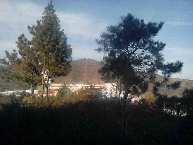 滑雪场正门,看到那条高高的雪道了,赶紧走起