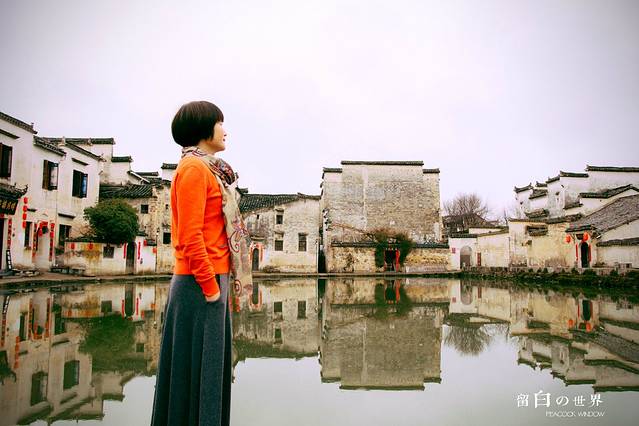 当我还沉浸在自己对爱情故事的幻想当中时,不知不觉已经信步走到了南湖水边,南湖并不大,甚至严格来讲称不上湖,而这一湾清澈的水域正是养育整个宏村的生命源头。当地人说,在宏村只要找到水你便不会迷路,因为沿着水走,你总能走到南湖,然后便找到了回家的路。这又是怎样的一种柳暗花明的诗意感呢,我感觉我已经开始爱上了这个小地方。