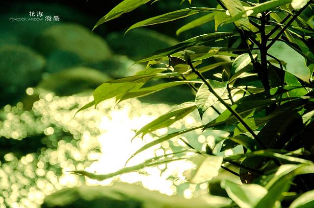 没有过了多久阳光就洒进了卧龙谷中,树叶缝隙之间的千道霞光走过千万里的路程带来了蓝天白云的问候,而微风下的树语和粼粼的波光也热情得回应着这远道而来的朋友。