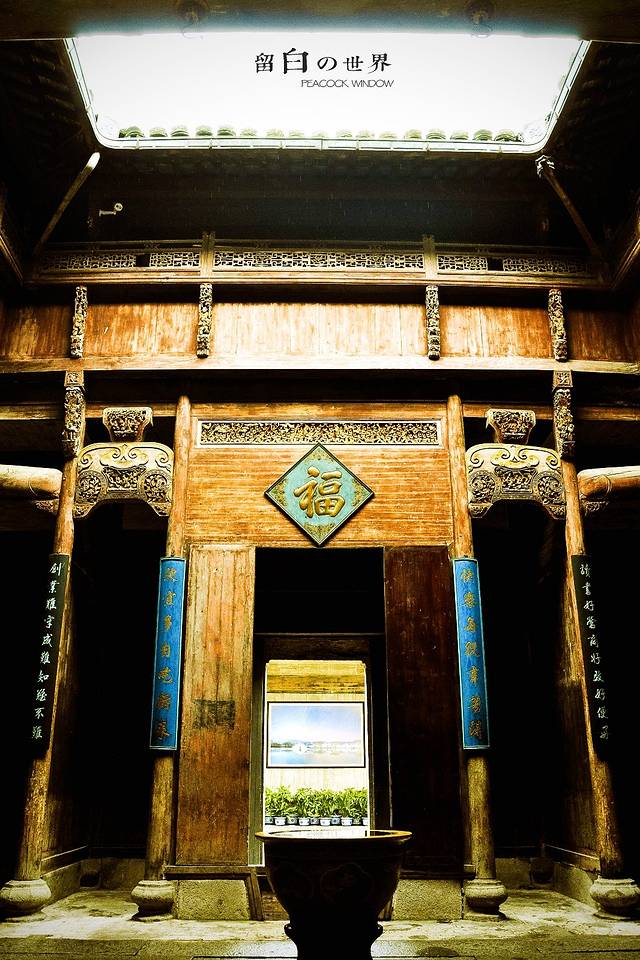 每当这时候小伙子就会被安排在正厅,家中必然也是要有长辈来招待的,可是小伙子心里清楚,这个时候,正有一个美丽的姑娘在二层的闺房中透过天井悄悄探出头来打量自己。而这个美丽的姑娘将告诉家人是否准了这门亲事,如果姑娘也满意,那这小伙子就讨到老婆可以欢欢喜喜回家去准备亲事了。看着这天井透出的蓝天白云,我想百年前楼上闺房的主人是不是拒绝一个又一个的追求者,在等待那见过一面或者是仅仅听说过的那个小伙子,而这个小伙子会不会也深深地爱上了这个姑娘,却犹豫在门口举步不前呢?我固执得认为,这不是封建,这是爱情,难道不是吗?