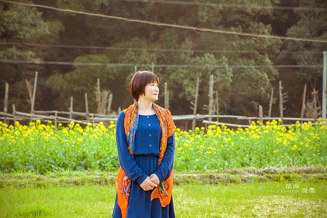 与江岭油菜花不同的是上下晓起村之间的一片油菜花田,悠长的小路穿过一片花海将两个孤岛一般的村子连接起来。花开成海,泼墨为村。在一片金黄的油菜花中,白墙黑瓦,群山环抱。就如同一副作在金色花海之上的国画。震撼绚烂的美丽之中又不乏婉约含蓄的深远意境。我信步走在花圃之中的小径上,自己仿佛成为了画中人,当我满怀欣喜却又手脚笨拙得记录下这美丽小山村的片段美景时,内心总是像在沙滩上捡到七彩贝壳的小姑娘一样喜悦,当然整整一个世界的美丽又岂是几张照片所能记录的,或许这是摄影的另一番乐趣,点滴之中折射整个世界,美丽却又让人无限遐想。