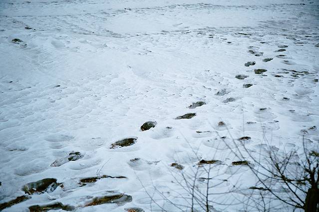 深深浅浅的脚印。雪会记得,我们走过的脚步。