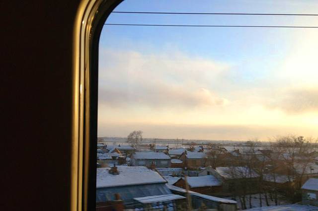 列车穿梭在白雪皑皑的风景里,还兴致勃勃地拍着窗外的景色,列车已经到达吉林。