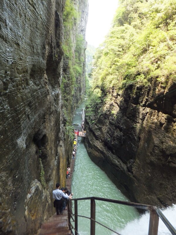 这便是一线天,真的很陡,要死要活走到头,就只是很小的瀑布,中途有演绎却是收费的,唯一让我为之一振的是峭壁上的木板路,都是钢筋管插进去的,来的导游说,这都是村民自己建起来的,真了不起