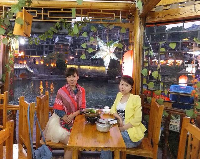 沿着江边坐下来,风微凉,今晚好好吃,凤凰特色雪耙鸭,味道很好,我们吃的很舒爽…其他菜色都忘了😱