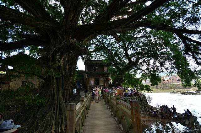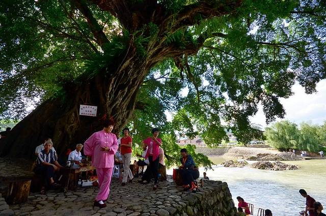 古栈道的上有一大片古榕树群,盘根错节,枝繁叶茂,蔚为壮观,共有12棵。坐在老榕树下,听溪流潺潺,沐乡风徐徐,看淳朴安闲的乡民走过,一种亲近乡土、回归自然的感觉油然而生。
