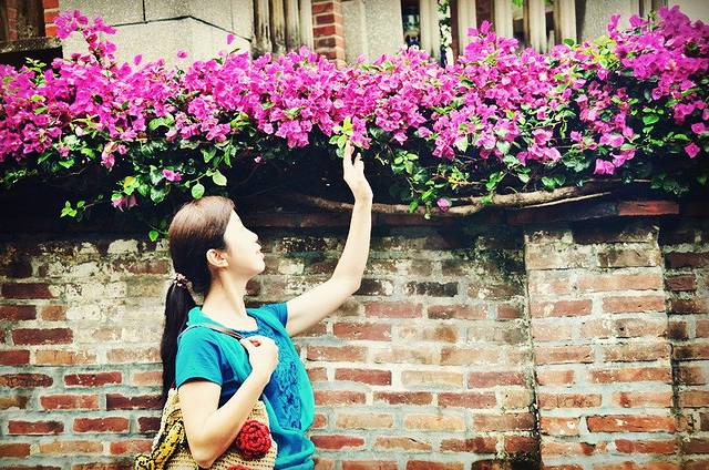 船屋围墙外的这片三角梅,大部分时间都被婚纱摄影团占据着,我真是很佩服节日期间冒着酷热穿戴整齐来拍婚纱照的,这样的小两口肯定是真爱~