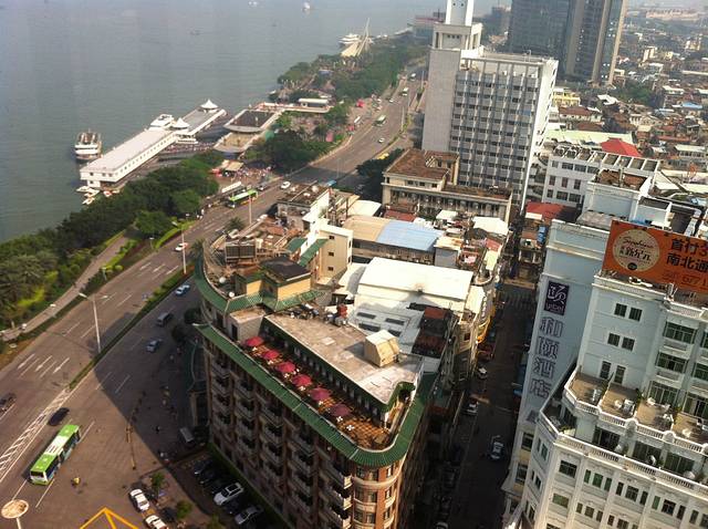 天气依然闷热,阳光依然明亮,今日终于见到蓝天白云的影子,轮渡站对面的鼔浪屿终于揭开面纱淸晰可见了。突然想起对面海滨大厦26楼有一家号称"世界最高的必胜客餐厅",坐电梯上去发现景观一流,早餐套餐15-25元/人,独享临窗无敌海景,观楼下车水马龙人流如织船来船往,不要太舒适,感觉性价比完胜鹭江宾馆顶楼的露天景观餐厅,强烈推荐!