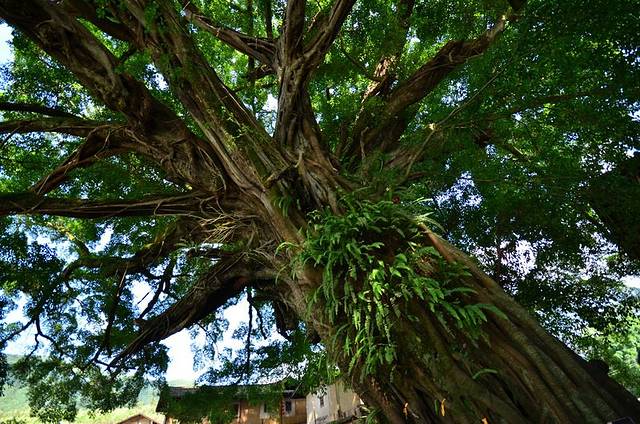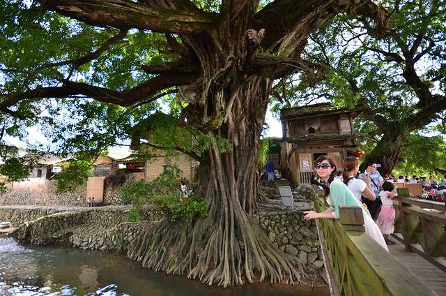 其中,位于吊角楼旁的这两棵老榕树,都有四五百年历史,号称树王和树后,要10多个人手拉手才能合拢。