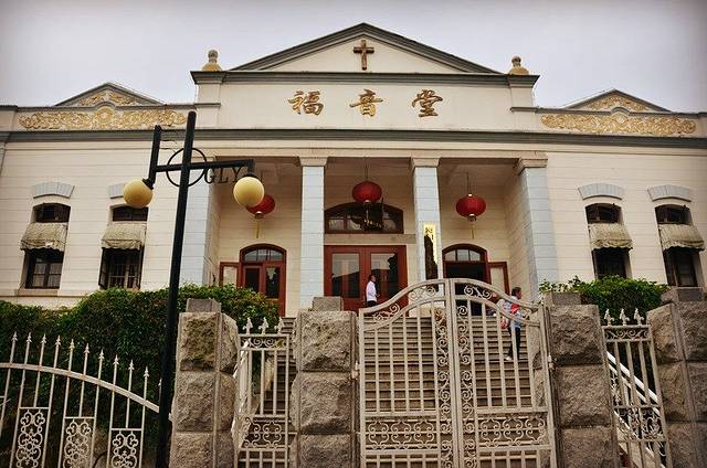 海天堂建于1921年,是鼓浪屿十大别墅之一,为菲律宾华侨黄秀烺购得租界洋人俱乐部原址所建,以中楼最有个性,“是宫非宫胜似宫,亦殿非殿赛过殿;不中不洋不寻常,中西结合更耐看。”这在鼓浪屿也是独一无二的。