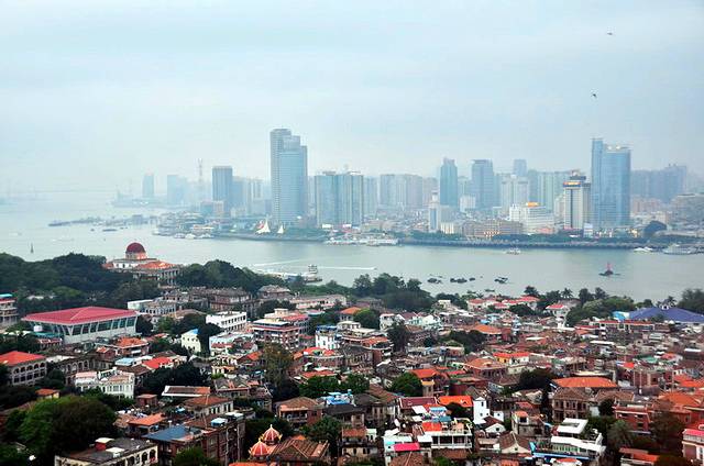 沿着海边一路向东去往皓月园,一直被薄雾笼罩的鼓浪屿两岸终于云开日出蓝天毕现
