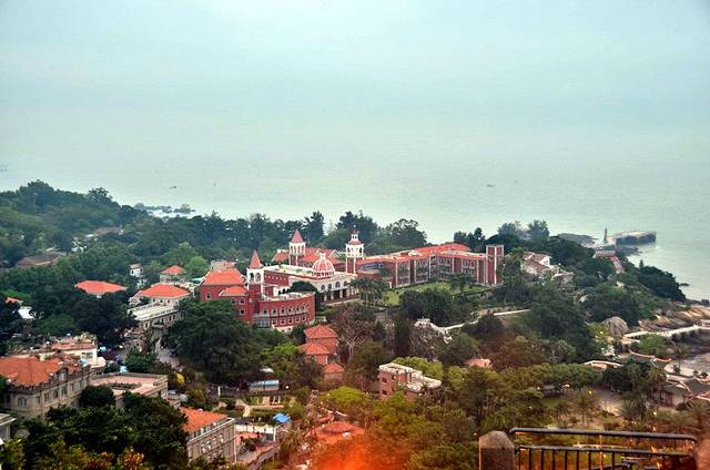日光岩是鼓浪屿上的至高点,可以一览岛内外全景,是必须要去的,但是顶上巴掌大的地方跟游客量实在不成比例,听说傍晚六点后上去人少些,特别安排在最后一站看落日,结果落日早隐云雾渐浓,蓝天白云下的红顶绿树碧海只能靠想象了~