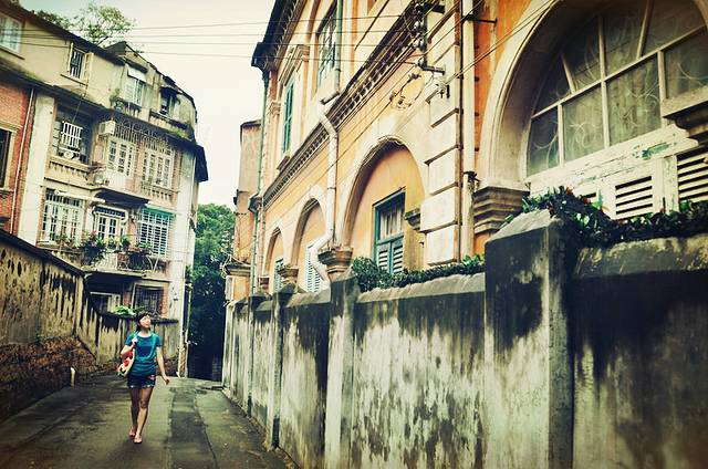 鼓浪屿的魅力,只停留在清晨八点以前,在阳光还隐藏在云层中,空气几多清凉,轮渡还拉着低沉的汽笛声游客未满,鼓浪屿的大街小巷还空空如也,墙头的三角梅孤寂地怒放,垂下墙角的青藤兀自摇曳,潮湿的小巷空寂延伸至远方,偶尔有早起的当地人走过留下一串匆匆的脚步声~