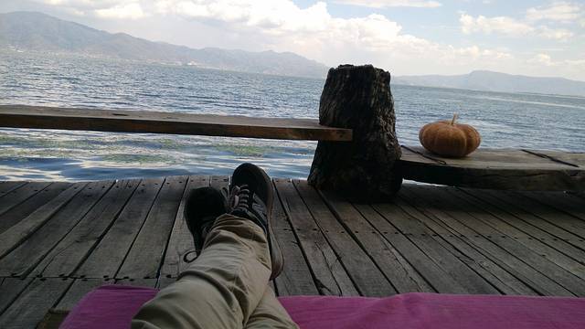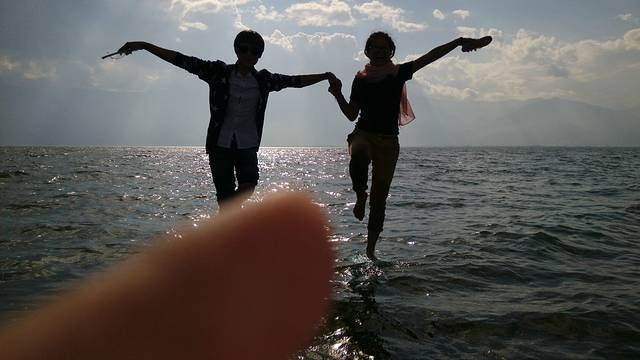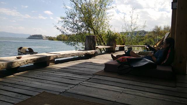 今天一早赶火车去了大理,到下关火车站都12点多了,就在火车站附近的一家白族饭馆简单吃了个饭,味道出乎意料的赞,全都吃的一干二净,是我们太饿了么?吃过午饭在火车站附近包了一部车去双廊,因为是淡季,价格很合理呦,连我双廊开店的朋友都觉得超级划算。。走的东线去双廊,一路沿着洱海环海路前行,风景真的超赞。我们在双廊订了玉几岛观缘客栈的海景房,淡季海景房的价格并不贵,在酒店稍事休整,下午我们就在双廊晃荡,晃荡,各种晃荡,免不了去海地生活俗一把,哈哈,晚上我在双廊开店的朋友带我们去胡吃海喝,各种刷脸换场子