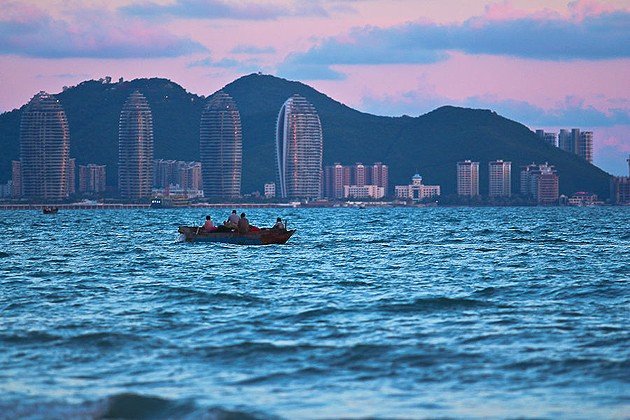 日落时分,红霞满天,不远处,传来渔民铿锵有力的节奏声,“一、二、三”,十几二十人正在奋力地拉着拖网。这就是“赶海“,可以体验真实的渔家生活。可别以为只是拉拉网这么简单,一张网长有百米,拉一次网要2、3小时,下午拉网,晚上8点左右才把网拉上来。在大东海度假区、亚龙湾度假区拉网已经是不允许的,只有在三亚湾度假区才见得到渔家拉网的生活点滴。拉网的收获实行平均分配,再分别由渔夫的妻女拿到附近的迎宾大道的小渔市售卖,在那可吃到鲜活的海鲜烧烤和海鲜火锅。