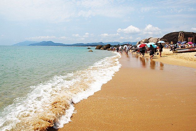 大东海之前是外国人最爱的海滩,他们外放的性格喜欢在这里裸晒,继而很多国人也有在这里裸晒的。随着裸晒的人增多,并且裸晒在中国还不符合规定,所以现在大东海命令禁止了裸晒。大东海月牙形的海湾,辽阔的海面晶莹如镜,只见白沙融融,阳光、碧水、沙滩、绿树构成了一幅美丽的热带风光。这里四季如春,水暖沙平。这里的海湾呈弓形,东南平行的两条小山脉就像两道堤墙筑入浩瀚的南海,铸成海湾和屏障。在这最舒服的海滩上度过一整个下午真的是再舒服不过了。