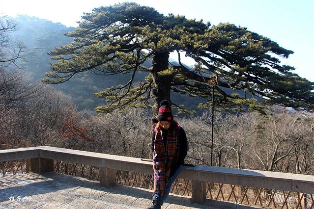 沿着黑虎松前面这一条路直走,可以到蘑菇亭和始信峰,这一段路比较好走,上坡的路比较少,微博上有一个黄山三小时天气预报,挺实用的,出发之前天天看。去之前我一心期待下雪,天天刷,可惜我去的那段时间都是小雪,以后有机会一定会选在二月份这样来看银装素裹的黄山。