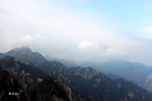 一般从后山上去四个小时差不多,我和闺蜜爬了六个小时,我们走走歇歇吃吃,耽误了好多时间,到了白鹅岭,风有点大。冬天去要多穿点,南方的湿冷大家懂的。从白鹅岭开始,美景就不断展开了,可惜云海还不够大,不过依然让我觉得来这一趟是值得的。