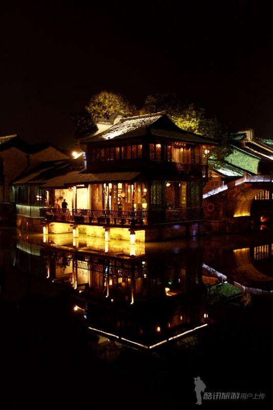 夜晚这里是光影的世界:灯光与水色相互交融,灯光迷离,水波微漾,倒影婆娑,光影交织……