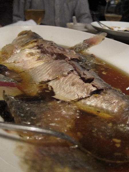 清蒸鲥鱼,很嫩很嫩,还没来得及吃就被片成遍体鳞伤样了~
