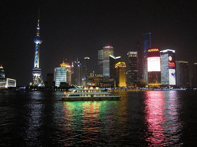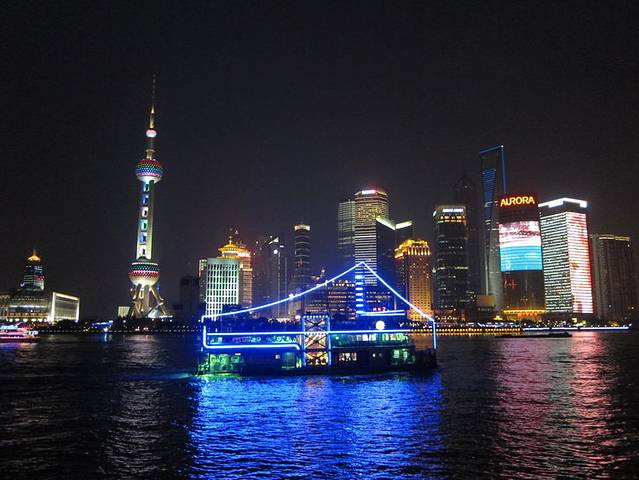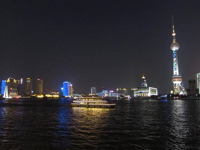 天色尚早,对岸的外滩还没有亮灯,已经有游轮在浦江上巡游了~