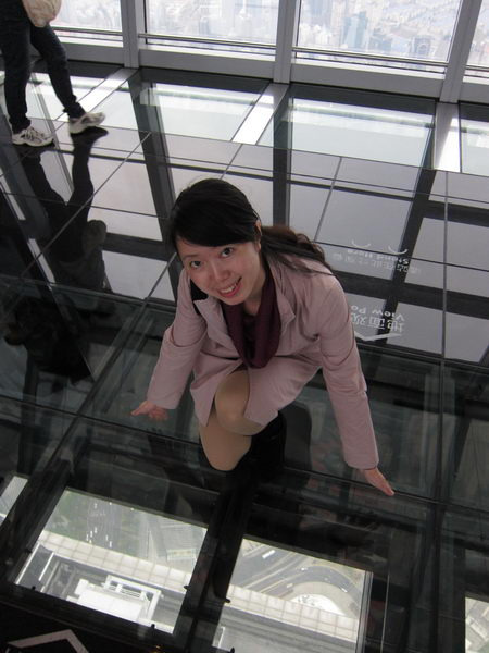 地板都是玻璃做的,还好姐没有恐高症~~特别重重地跺了一脚,旁边的人问:你要爪子?我说:试试结不结实~~