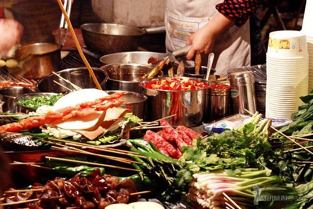 小憩一下后询问了酒店工作人员哪里有夜市,重庆北站这里真的是非常非常方便,住的地方多,吃的东西多。酒店步行5分钟就可以看到一个夜市,夜市一般九点后才出。艾玛,各位,知道我的感觉么!绝对是饥饿的人扑在了面包上啊!!!